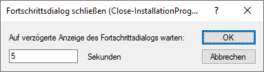 Der folgende Befehl wartet maximal 5 Sekunden, um einen Fortschrittsdialog zu schließen.