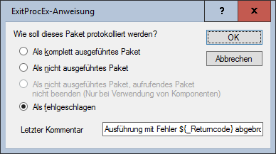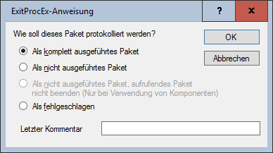 Legt fest, mit welchem Status das Paket beendet wird. - Als komplett ausgeführtes Paket