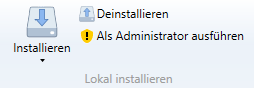 Über die Schaltflächen im Abschnitt "Lokal installieren" auf dem "Aufgaben"-Register können Sie die Ausführung des aktuellen Stands des aktiven Pakets in der PPB in verschiedenen Modi ausführen (siehe auch Hintergrundinfo Installationsmodi). Zusätzlich können Sie über die "Als Administrator ausführen" Schaltfläche festlegen, ob das Script in einer Umgebung mit erweiterten Rechten ausgeführt werden soll oder mit den normalen Rechten des angemeldeten Benutzers.