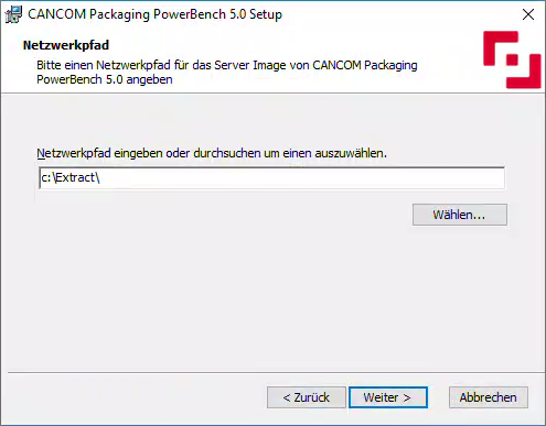 Nun geben Sie den Pfad ein, in den die Quelldateien entpackt werden sollen:
