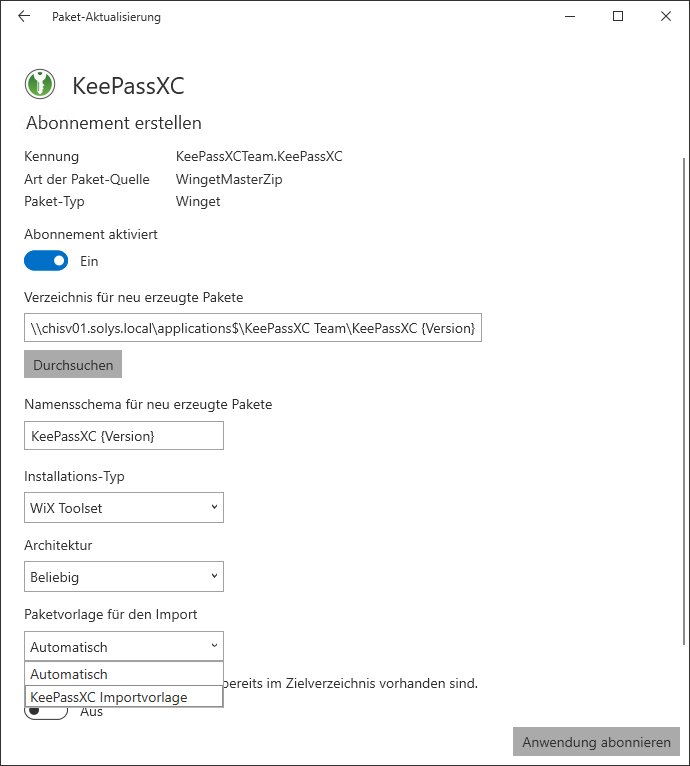 ... als auch beim Abonnieren der Applikation über den Package Subscription Service: