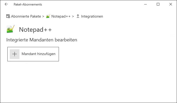 Über die Schaltfläche "Mandanten" an einem abonnierten Paket legen Sie fest, in welchen Mandanten neu erzeugte Pakete der abonnierten Applikation in bereitgestellt werden sollen.