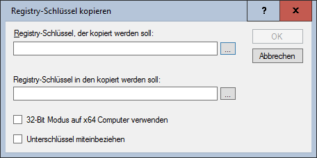 Kopiert alles unterhalb des angegebenen Registry-Teilbaums in einen anderen Teilbaum. Ist der Schlüssel, in den kopiert werden soll, nicht vorhanden, wird er angelegt.