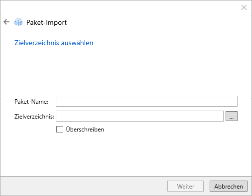 - Starten Sie den Paket-Import wie oben beschrieben.