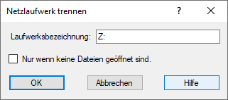 Laufwerksbuchstaben des Netzlaufwerks, das getrennt werden soll. - Nur wenn keine Dateien geöffnet sind