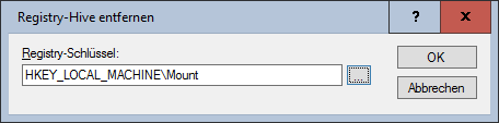 Das folgende Beispiel entlädt den Registry Schlüssel Mount, an den vorher mit Mount-Registry eine Datei an diese Stelle geladen worden war.