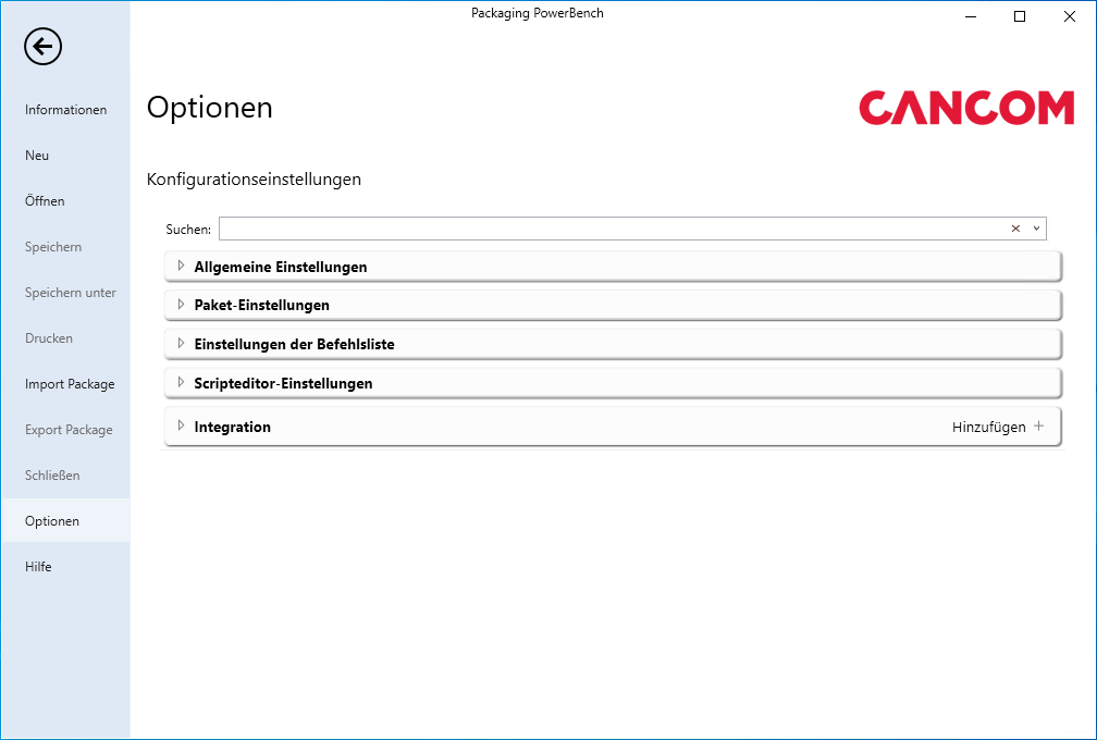 Einstellungen der Packaging PowerBench