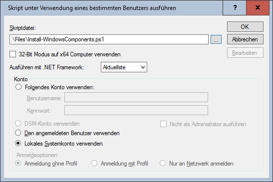 Wenn das Script auf einem 64-Bit Betriebssystem ausgeführt wird, kann bei Referenzierung auf das SYSTEM32-Verzeichnis automatisch das Pendant für 32-Bit Applikationen SysWOW64 verwendet werden. - Ausführen mit .NET Framework
