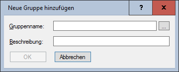 Der Name der Gruppe, die neu angelegt werden soll. Wählen Sie über die "..."-Schaltfläche eine (auf dem Paketiersystem) bestehende Gruppe aus oder geben Sie den Namen der Gruppe an. - Beschreibung