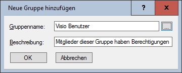 In diesem Beispiel wird die lokale Gruppe "Visio Benutzer" angelegt und die Beschreibung gesetzt: