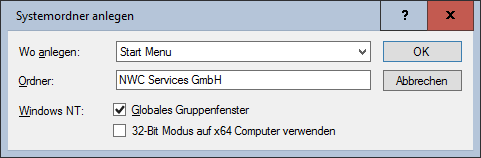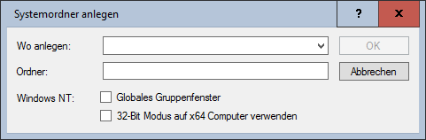 Der Name des Ordners, der erstellt werden soll. Dabei sind Variablen erlaubt. - Globales Gruppenfenster
