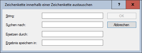 Sucht in einer Zeichenkette nach einem festgelegten Teilstring und tauscht alle Vorkommen dieses Teilstrings gegen den angegebenen Teilstring aus. Der Befehl unterstützt keine Platzhalter.