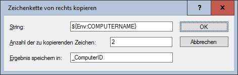 Das folgende Beispiel liest die beiden rechten Zeichen des Computernamens aus der %Computername% Umgebungsvariablen und speichert das Ergebnis in der lokalen Variablen _ComputerID: