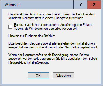 - Benutzer auch bei automatischer Ausführung des Pakets fragen, ob Windows neu gestartet werden soll