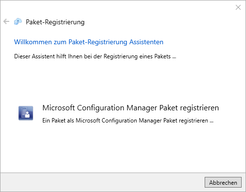 - Es öffnet der Paket-Registrierung Assistent, auf dem Sie bitte die Schaltfläche "Microsoft Configuration Manager Paket registrieren" drücken.