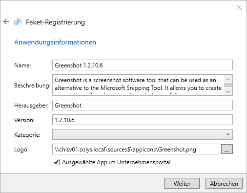 Name der Applikation, wie Sie im Unternehmensportal erscheinen soll |