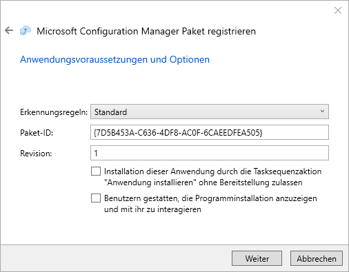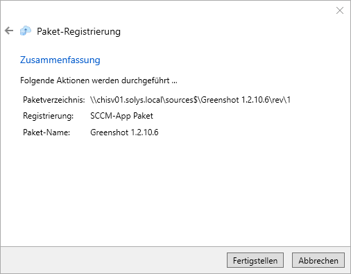 Registrierung eines Pakets in Configuration Manager