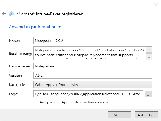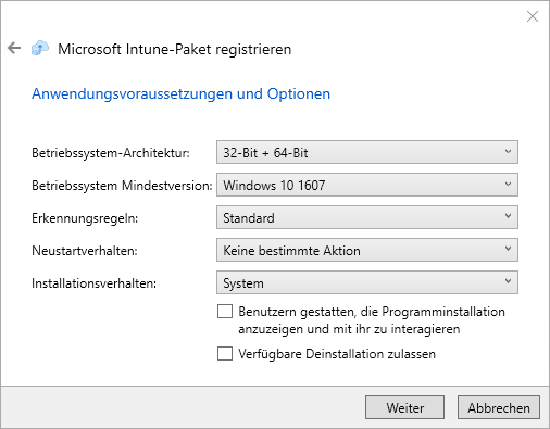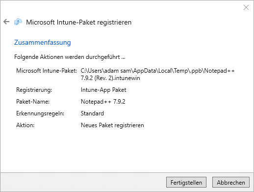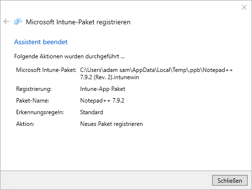 Registrierung eines Pakets in Intune