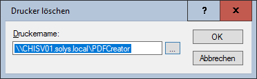 - Das Textfeld des Befehls Remove-PrinterConnection ist nun mit dem entsprechenden Wert gefüllt. Mit Klick auf die Durchsuchen-Schaltfläche können Sie die Auswahlliste erneut anzeigen.