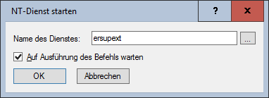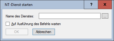 Der Name des Dienstes in der Dienstdatenbank. Über die "..."-Schaltfläche kann ein beliebiger (auf dem Paketiersystem vorhandener) Dienst aus der Dienstdatenbank übernommen werden. - Auf Ausführung des Befehls warten