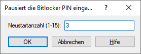 Das folgende Beispiel setzt die Bitlocker Pin-Eingabe für drei Neustarts aus.