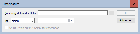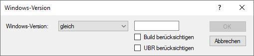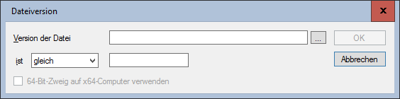 Prüft die Version der angegebenen Datei. Sie können beim Erstellen der Bedingung die zu prüfende Datei im Dialog Dateiversion auswählen. Die Packaging PowerBench setzt in diesen Dialog dann die korrekt formatierte Versionsnummer der ausgewählten Datei ein.