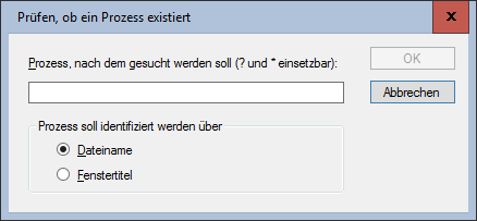 Prüft, ob ein bestimmter Prozess aktuell läuft. Es kann nach dem Namen des Prozesses oder des zugehörigen Dialogfensters gesucht werden. * und ? sind als Wildcards erlaubt. - IsRestartFlagSet / Test-SystemRestart (System-Neustart erforderlich)