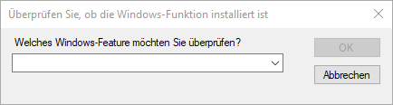 Prüft, ob das angegebene Microsoft Update auf dem aktuellen System installiert ist oder nicht. Geben Sie die KB-Nummer im Format "KB<6-stellige Nummer>" an oder wählen Sie das Update, auf das Sie prüfen möchten, über die "..."-Schaltfläche aus. - CheckWindowsFeature / Test-WindowsFeature