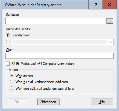 Der zu setzende Dezimalwert. Über die Aktion wird näher bestimmt, wie der Wert zu setzen ist (Setzen, Addieren oder Subtrahieren). - 32-Bit Modus auf x64 Computer verwenden